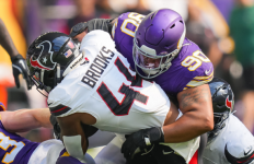 Minnesota added one more touchdown late as they drove 76 yards in seven plays. Hockenson made the 28-yard touchdown grab. That score would put the Vikings up 24-3 at the half as Hockenson had 10 catches for 128 to this point.
